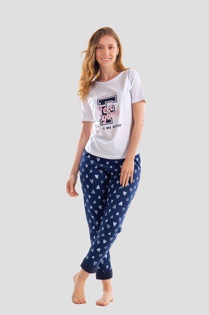 Pijama de pantalón blanca-azul mujer