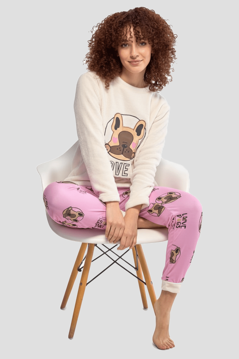 Pijama térmica frenchie beige mujer