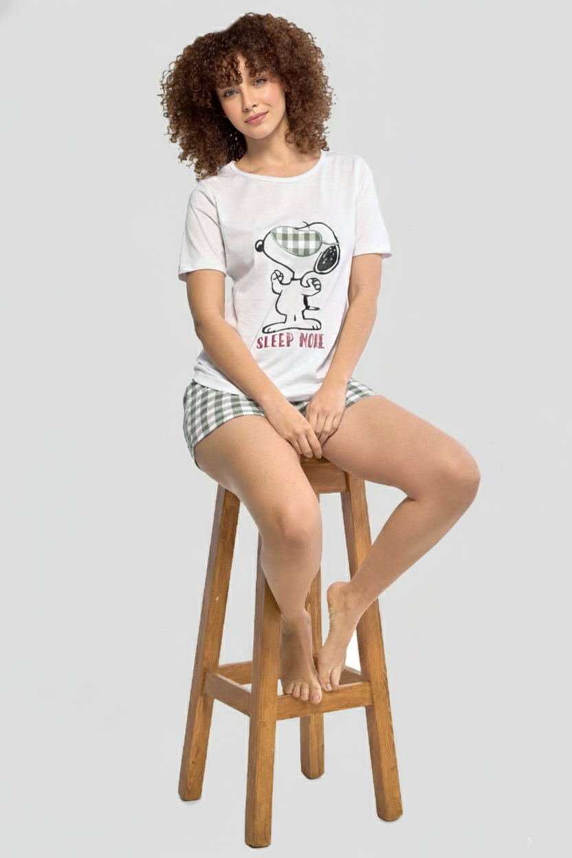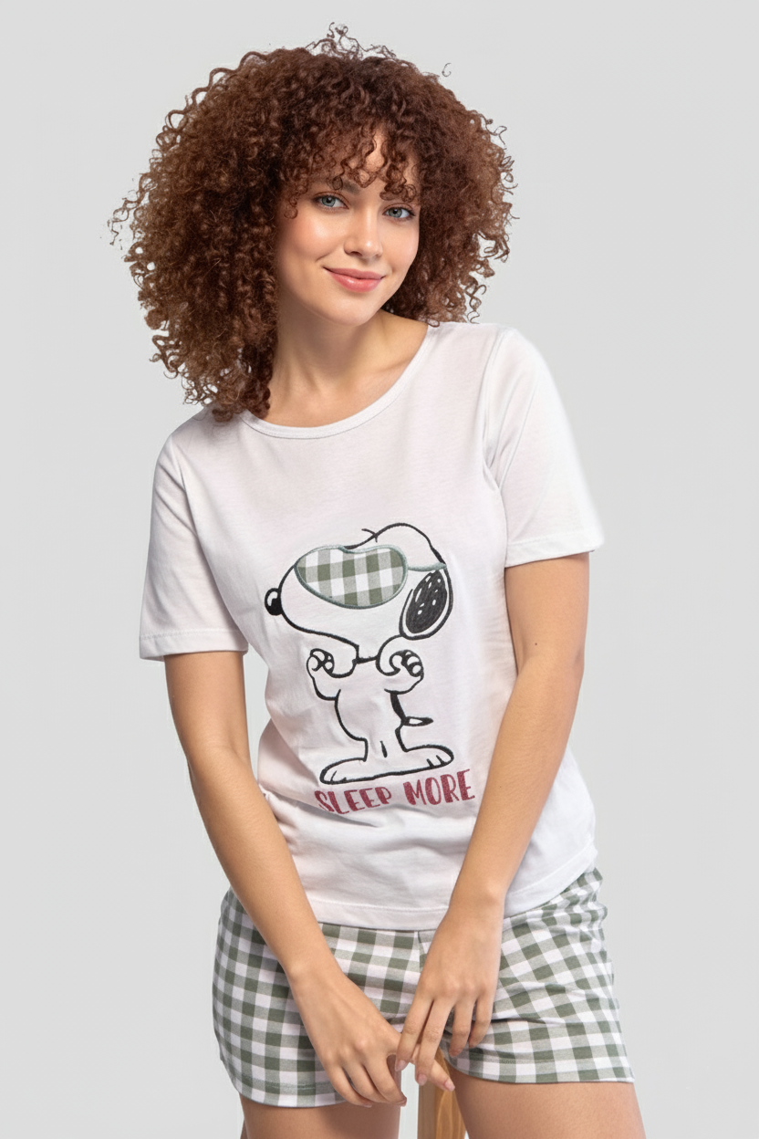 Pijama short snoopy blanca mujer