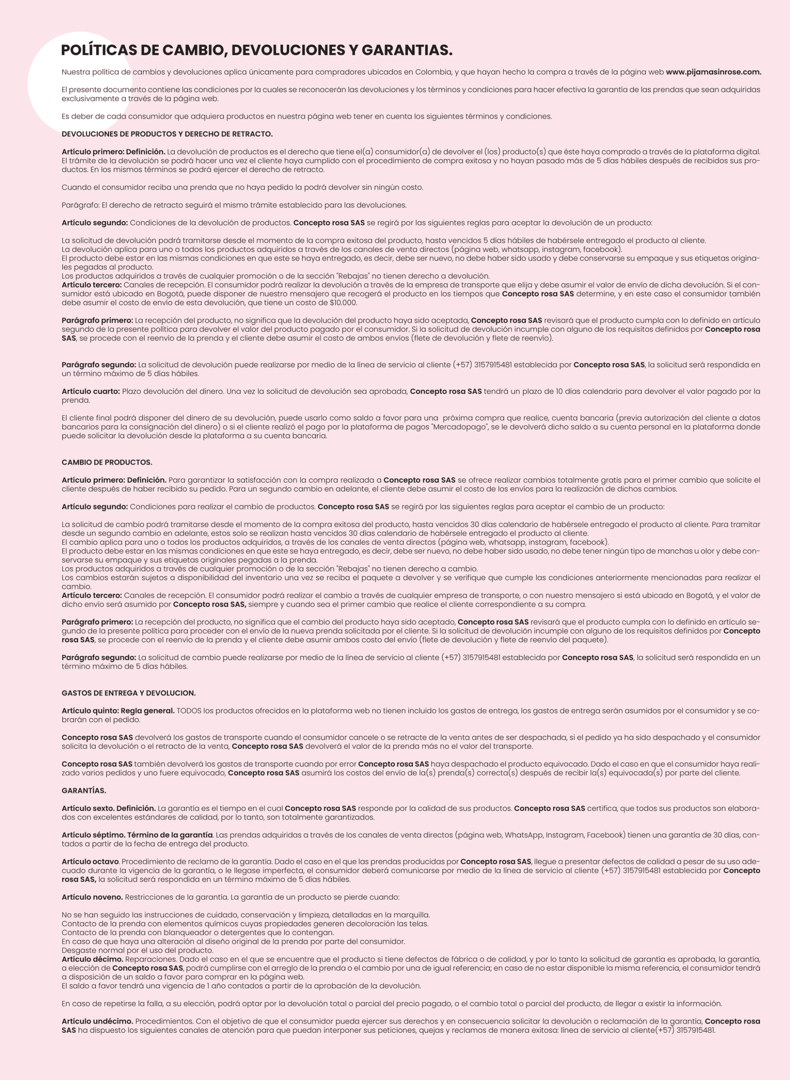POLÍTICAS DE CAMBIO En In Rose queremos que estes 100% satisfecha con tu compra, si por algún motivo estás inconforme con el producto que adquiriste, ten en cuenta lo siguiente: